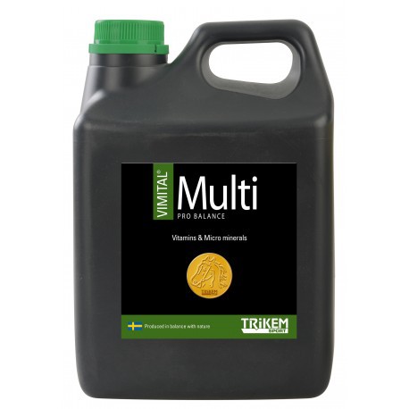 Grosse Pferde (550 kg) erhalten am Tag 30 ml ins Futter. Bei anderen Pferden erfolgt die Dosierung im Verhältnis zum Körpergewicht oder gemäss den Angaben des Tierarztes. Pferde mit hartem Training erhalten 60 ml am Tag. Um nicht den maximal zulässigen Gehalt an Zusatzstoffen in Futtermitteln zu überschreiten, dürfen höchstens 60 ml Vimital Multi Pro Balance am Tag verfüttert werden.